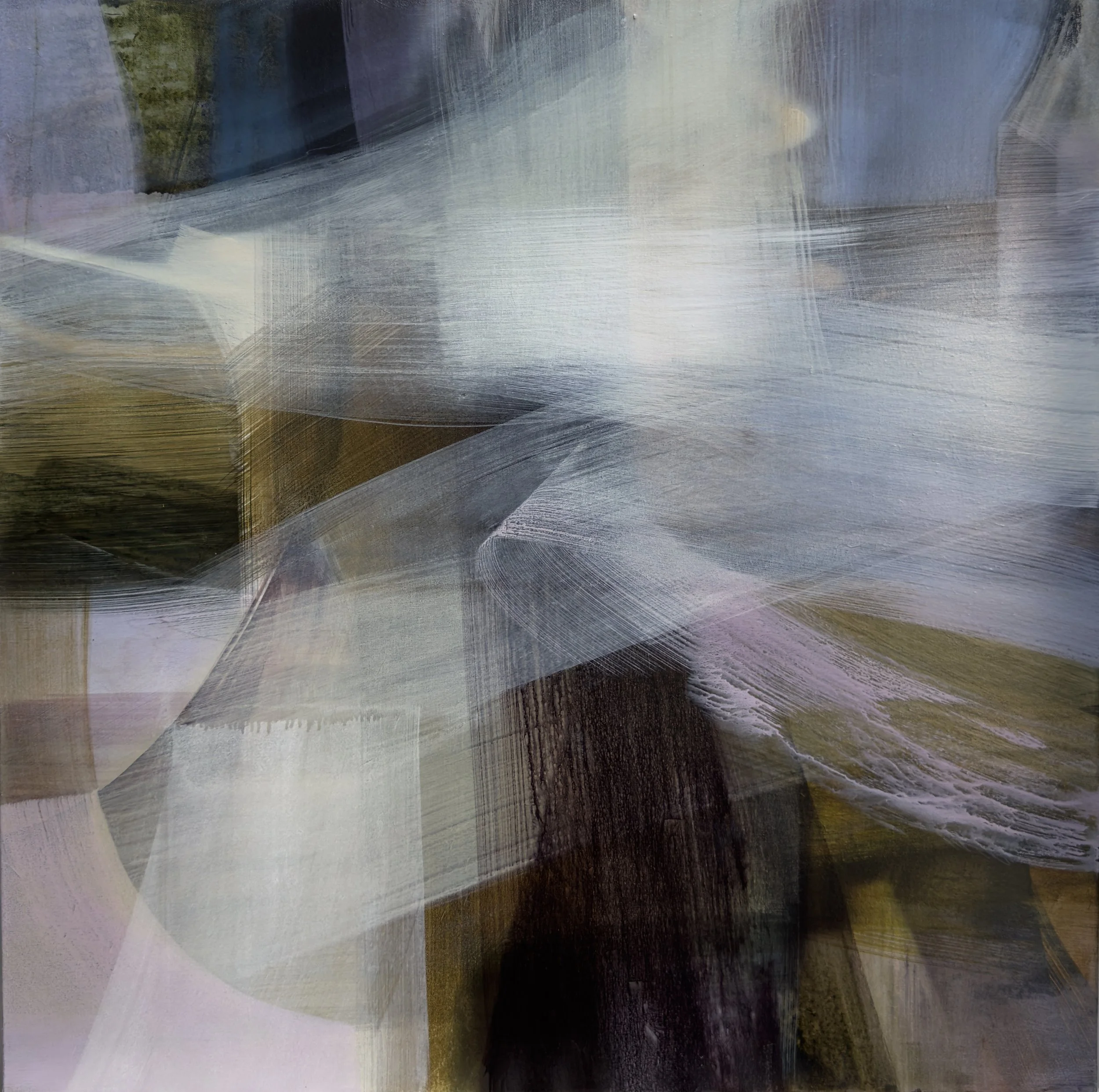 A bold and grounded abstract landscape, this piece explores the quiet drama of dusk settling over open land. Deep plums and forest greens stretch across the canvas, softened by pale sky tones and sweeping gestures of muted light. Rich in depth and contrast, it evokes stillness and space—an expressive work that anchors any interior with a sense of calm and presence.